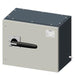 SINOVA, onload changeover switches 3KJ0, manually operated, size 3, 4-pole, in enclosed execution Iu: 800 A, Ue AC: 415 V, Ie at AC-23 A at 415 V: 720 A, screw mounting, front operating mechanism, at the left end, complete unit with door operating mechanism, Plastic handle, grey and black colour, flat terminal